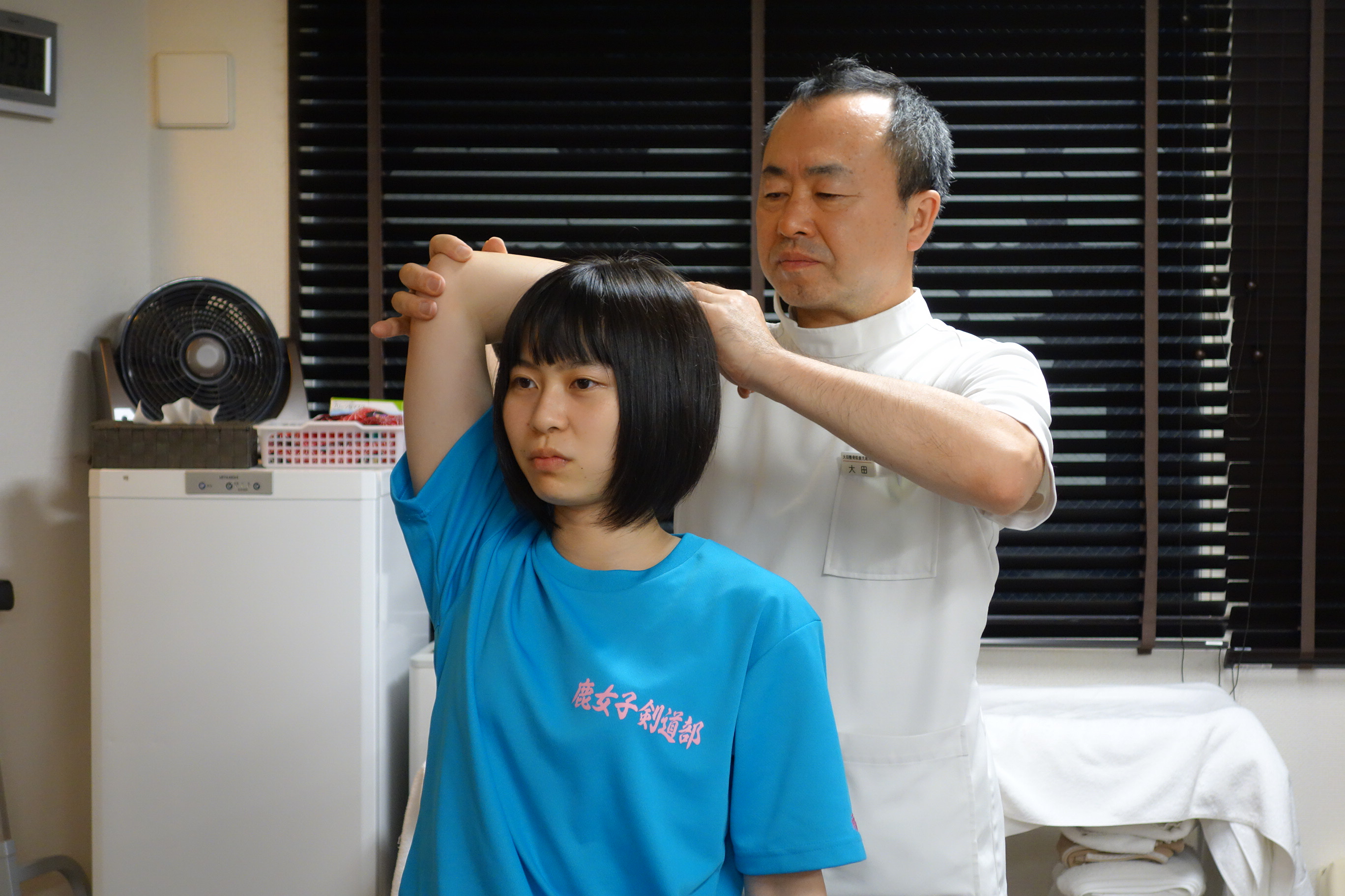 先週から鹿児島女子高剣道部の3年生2人が治療に来ています。