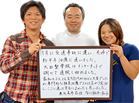 鹿児島市在住 有川裕介様・和子様1月に交通事故に遭い、夫婦で約半年施術に通いました。最初は2人ともむち打ちがひどく大変でしたが、専門的な根本施術で2人ともすっかり癒えて、ここに通って本当によかったと思いました。